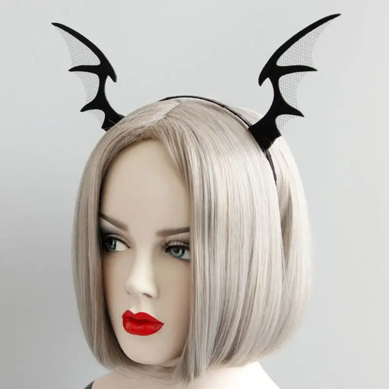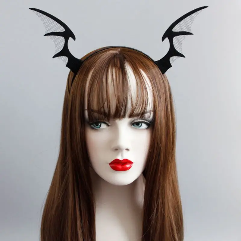 Women Girls Black Devil Horn Headband Net Yarn Hair Hoop Halloween Decor Supply