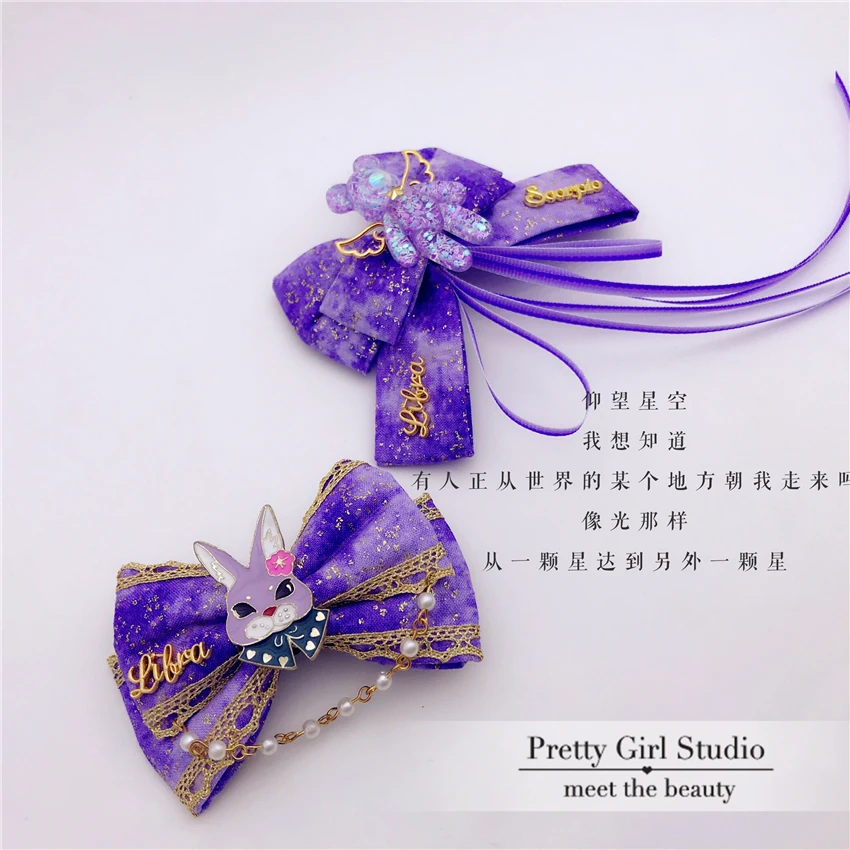 Best Quality Dream Purple Gradient Starry Night Lolita Cosplay Hair Accessories Kawaii Rabbit Bear Lace Bowknot