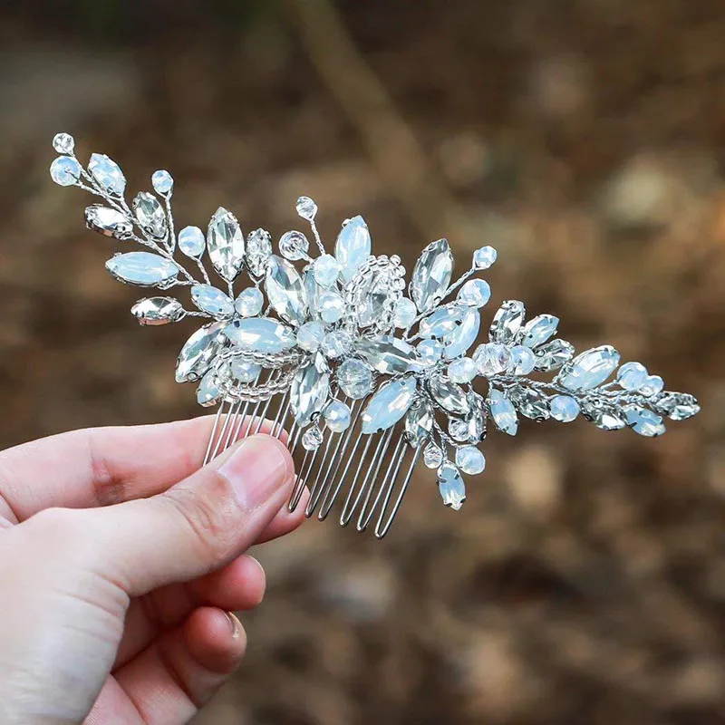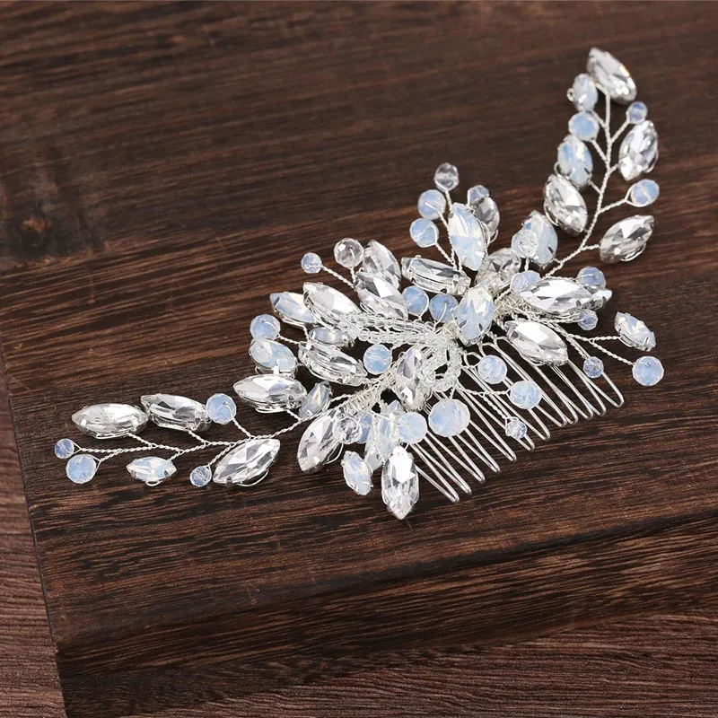 HOT Sale Opal Crystal Pearl Bride Hair Comb Princess Wedding Crown Headbands Handmade Pearl Hair Combs Weddi