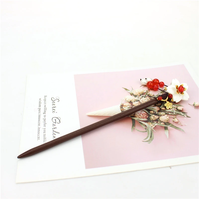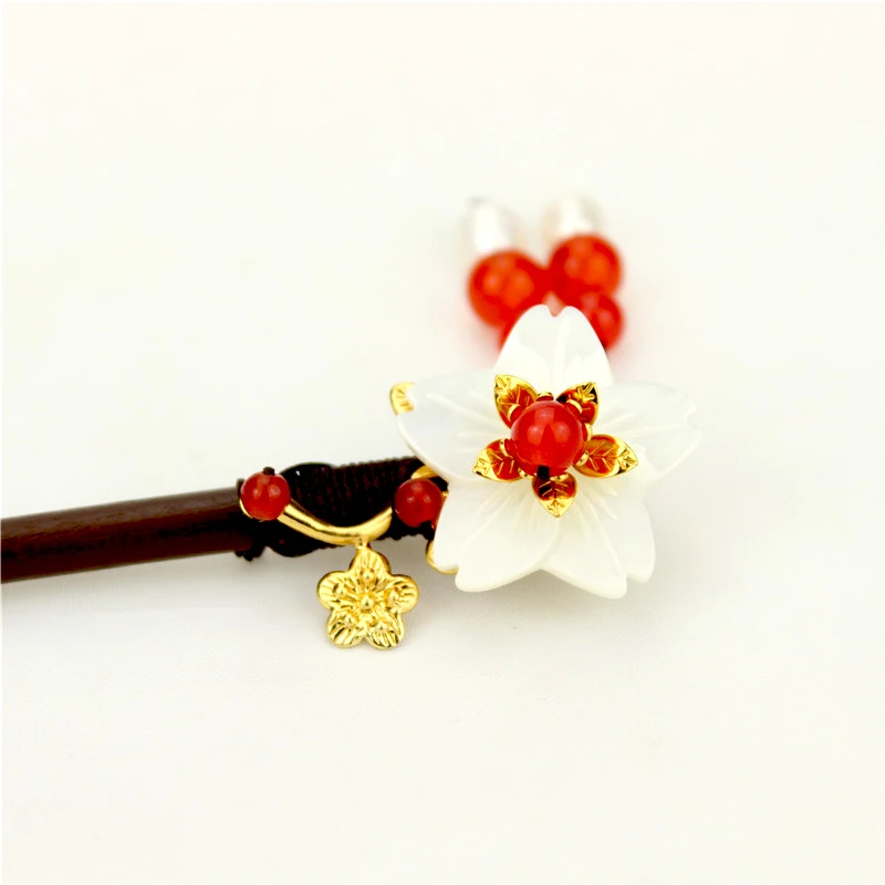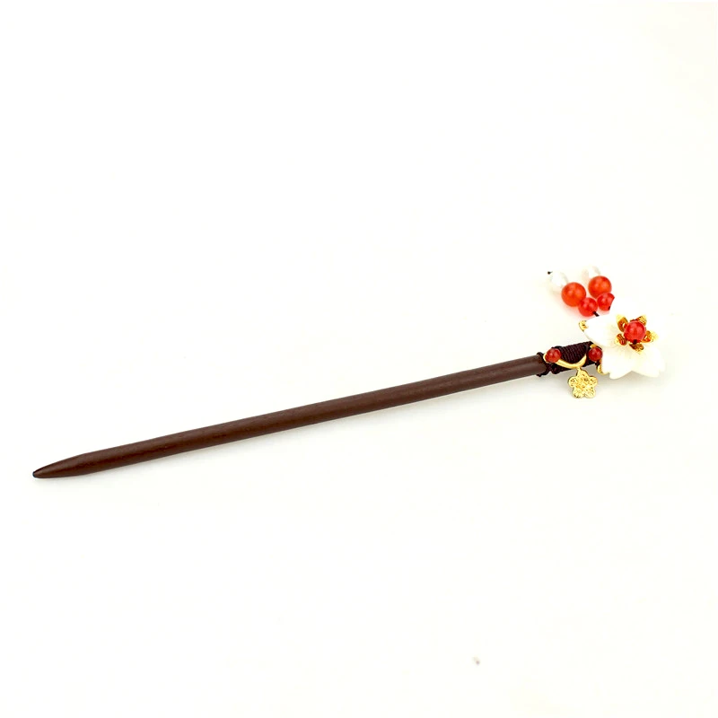ORIGINAL Hair Stick Bun Holder Natural Wood Elegant Shell Flower Tassel Shape Kanzashi Japanese Style Kimono
