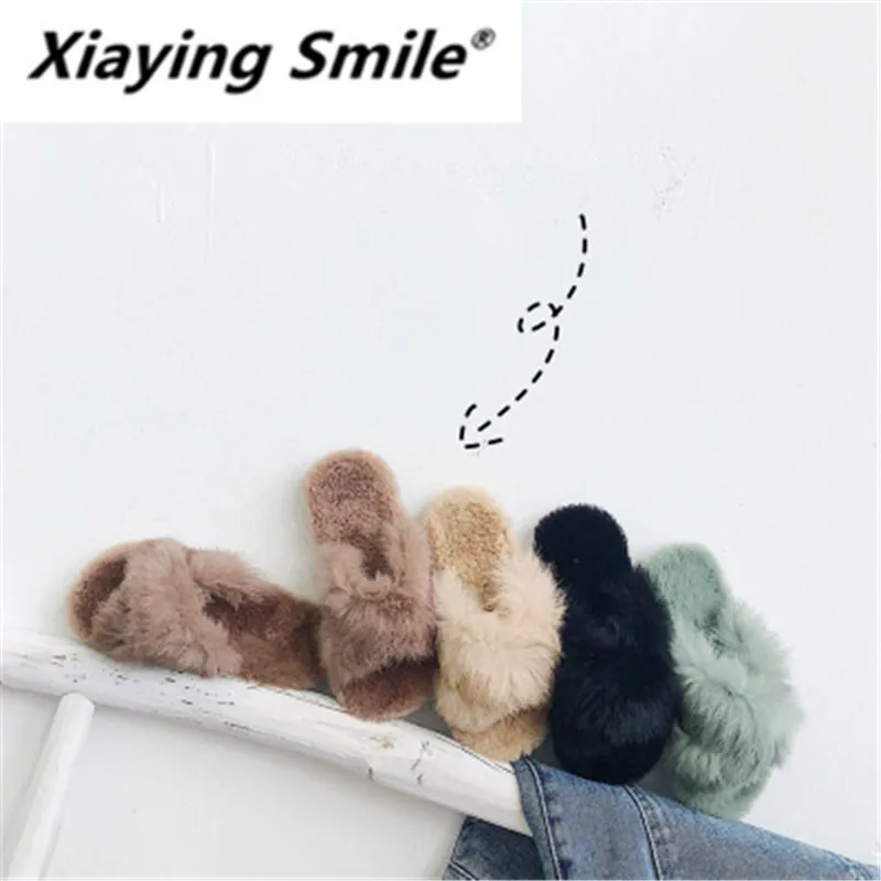 Xiaying Children Hair Slippers Fall Winter 2019 New Type Net Red Rabbit Hair Girl Warm Cotton Slipp