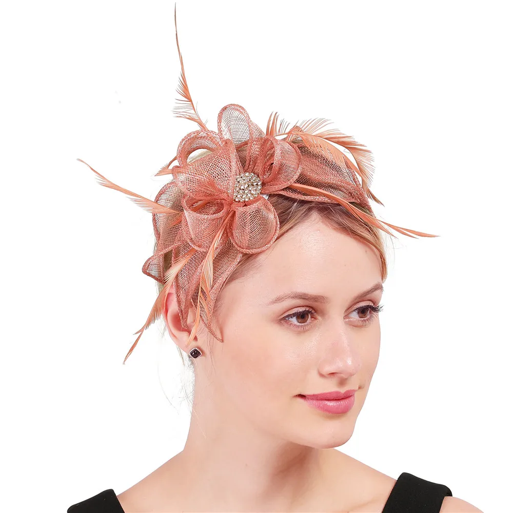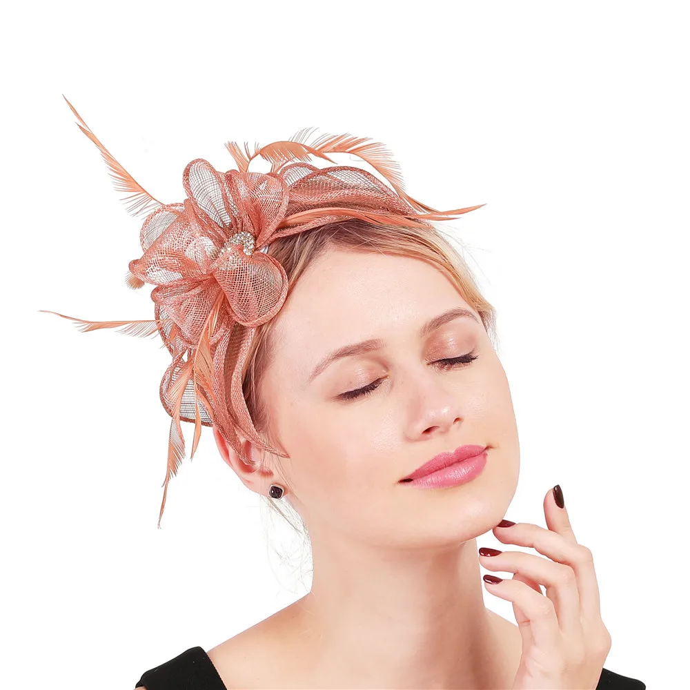 Best charming peach millinery Wedding hair clip hair Fascinator sinamay Church show Hat or Headbands Win